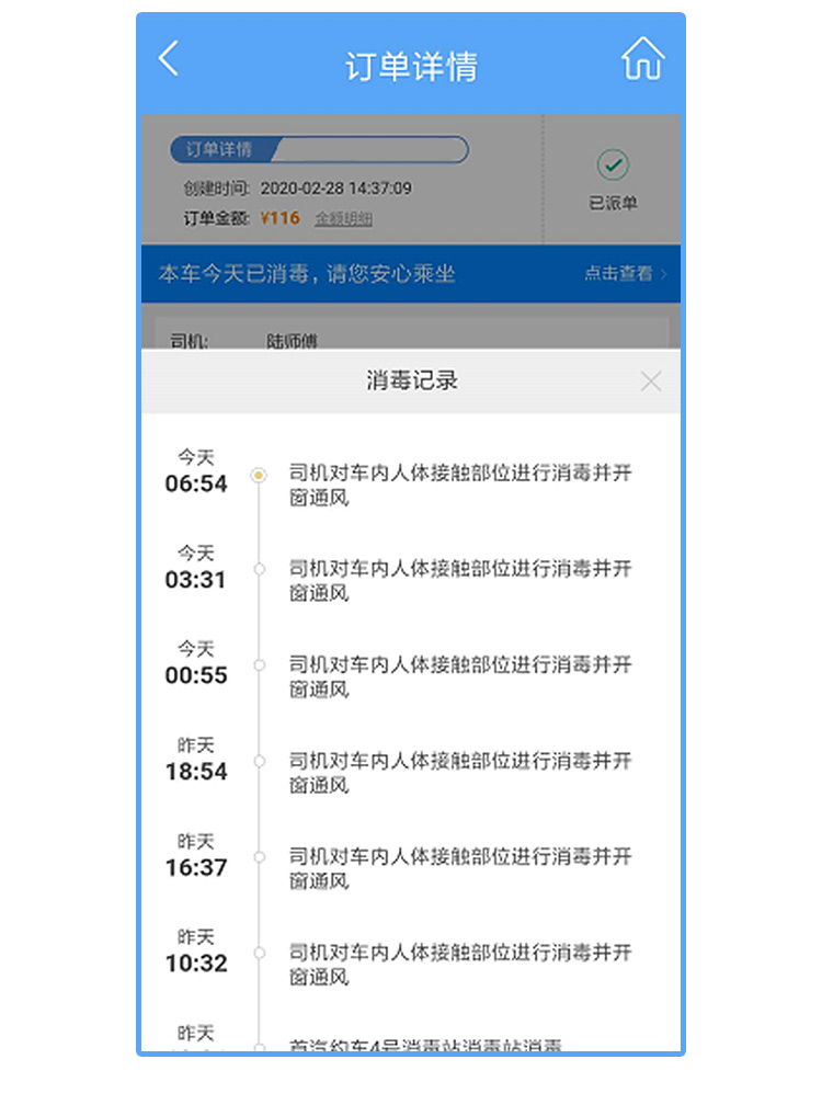 “点击查看”您预订车辆的消毒记录